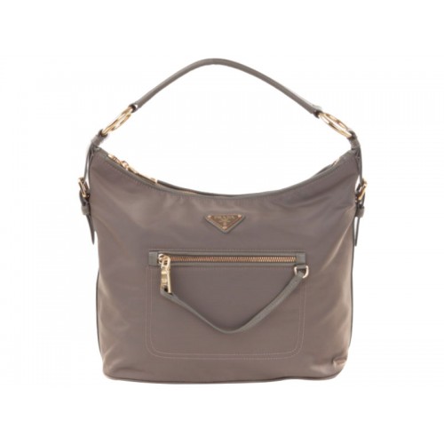 Prada Tessuto Nylon With Leather Trim Hobo Bag Grey