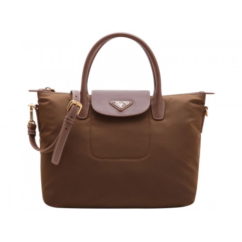Prada Tessuto Nylon With Leather Trim Tote Brown