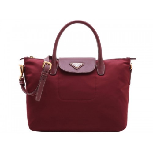 Prada Tessuto Nylon With Leather Trim Tote Burgundy
