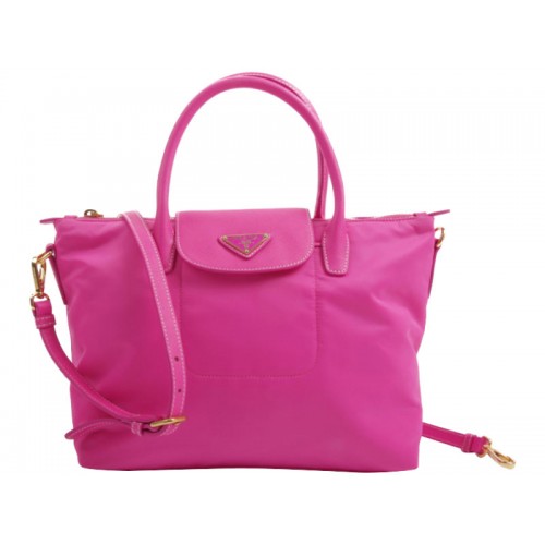 Prada Tessuto Nylon With Leather Trim Tote Peach
