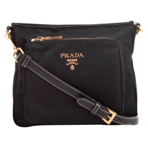 Prada Tessuto Saffian Nylon With Leather Crossbody Messenger Bag Black