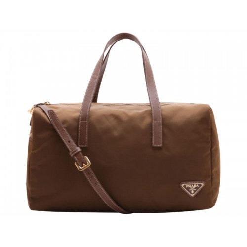 Prada Vela Nylon Top Handle Bag Brown