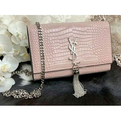 Saint Laurent Kate Medium With Tassel Crocodile Shiny Leather Light Pink