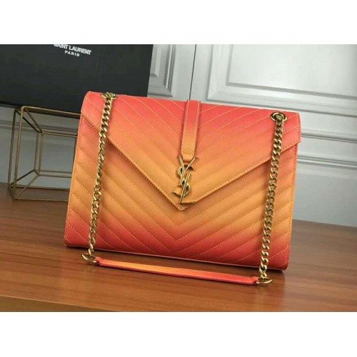 • Saint Laurent Ysl Monogram Satchel In Orange Matelasse Leather