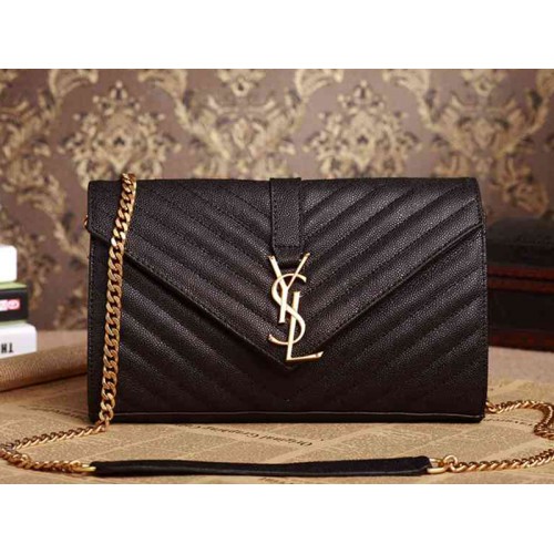 CLASSIC FLAP FRONT BAG WITH GOLD-TONED METAL YSL SIGNATURE, MATELASSÉ STITCHING AND METAL DOUBLE GOURMETTE CHAIN STRAP THAT CAN BE WORN CROSS-BODY OR ON THE SHOULDER.