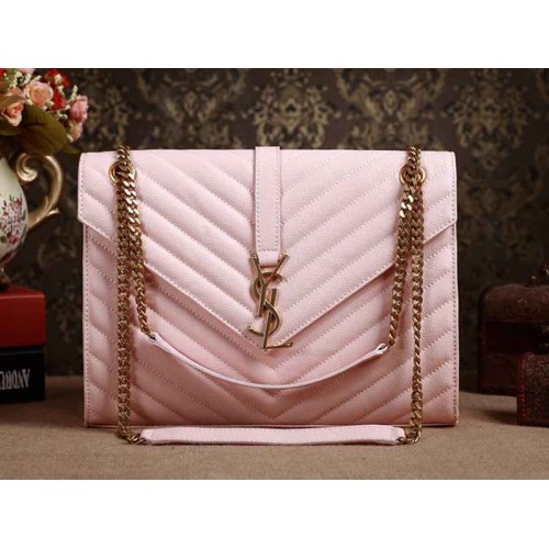 • Yves Saint Laurent Classic Large Monogramme Satchel In Pink Grain De Poudre Textured Matelasse Leather
