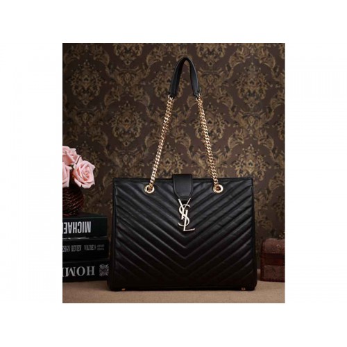 • Yves Saint Laurent Classic Monogramme Shopping Bag In Black Lambskin Matelasse Leather