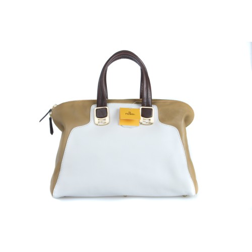 Spring Summer 2012 Fendi Colorblock Chameleon Convertible Tote Beige/White/Brown