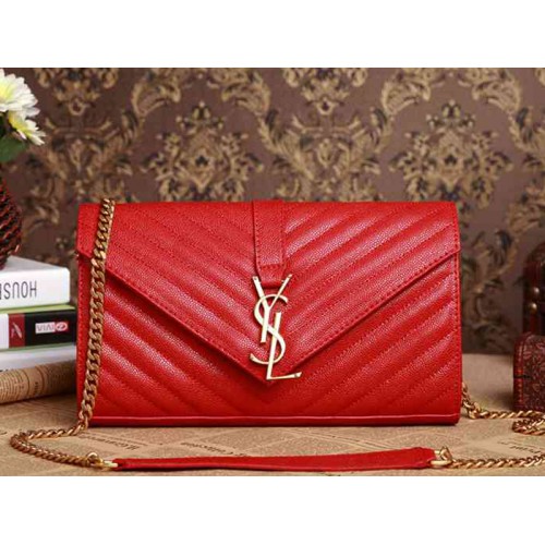 • Ysl Medium Monogramme Satchel  Red Grain  Poudre Textured Matelasse Leather
